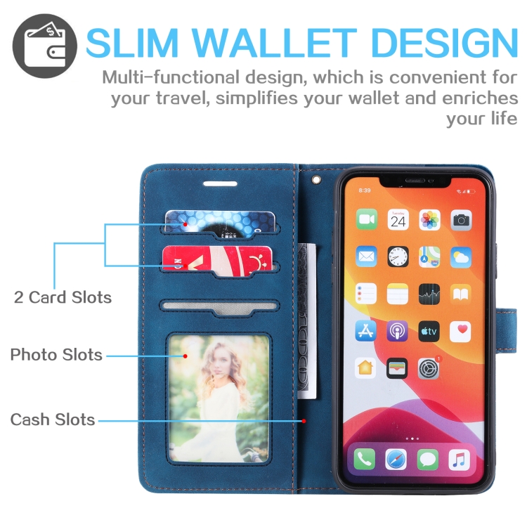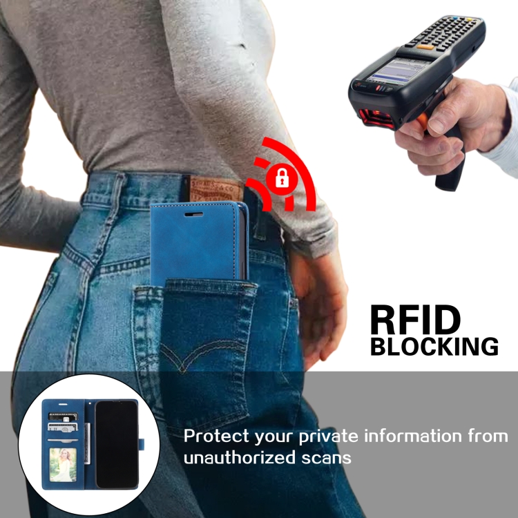 Funda para teléfono Piel Anti-Robo iPhone 11 Pro Max Flip Horizontal (Azul)