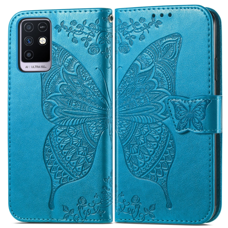 Funda de Cuero Flores de Amor Mariposa para Infinix Nota 10 con Soporte y Ranuras (Azul)