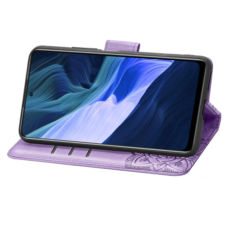 Funda de Cuero Flores de Amor Mariposa para Infinix Nota 10 con Soporte y Ranuras (Luz Púrpura)