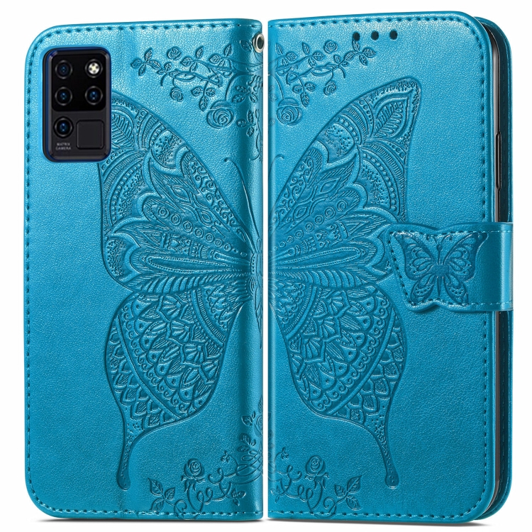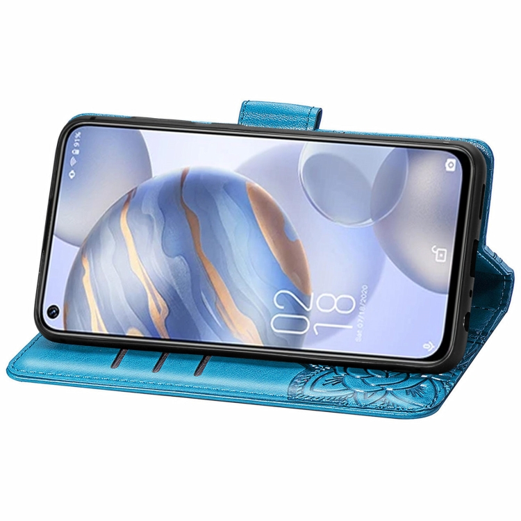 Funda de Cuero Oukitel C21 Flores de Amor Mariposa Horizontal con Soporte y Ranuras (Azul)
