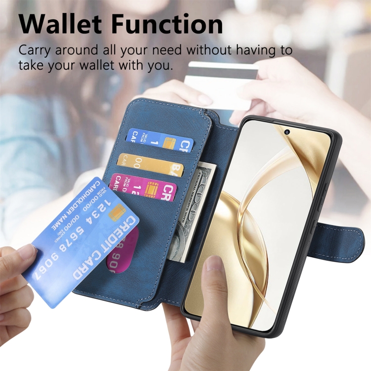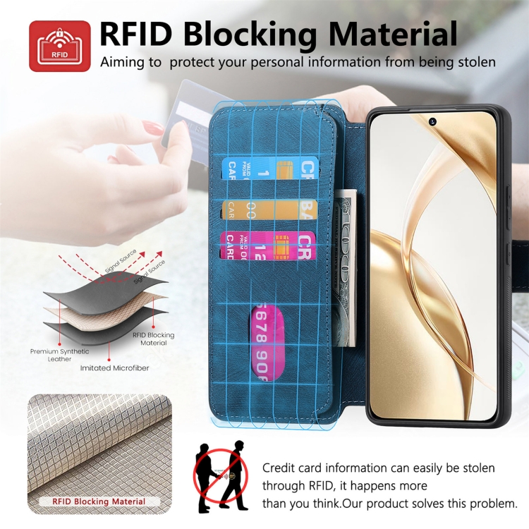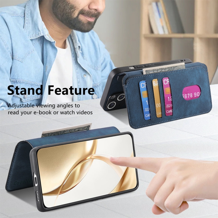 Funda For Honor 200 Caseneo Magsafe Rfid para Teléfono Cuero Retro Antirrobo (Azul)