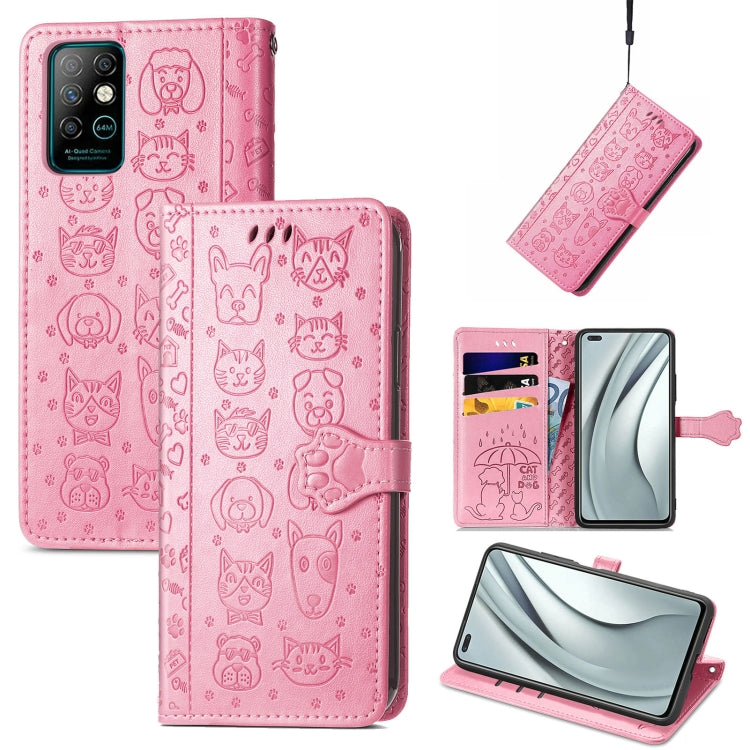 Funda de Cuero Horizontal para Infinix Note 8 con Estampado de Gato y Perro, Soporte, Ranuras y Cordón (Rosa)
