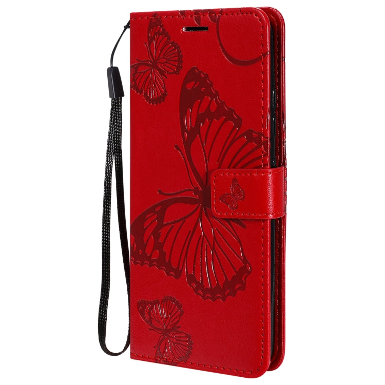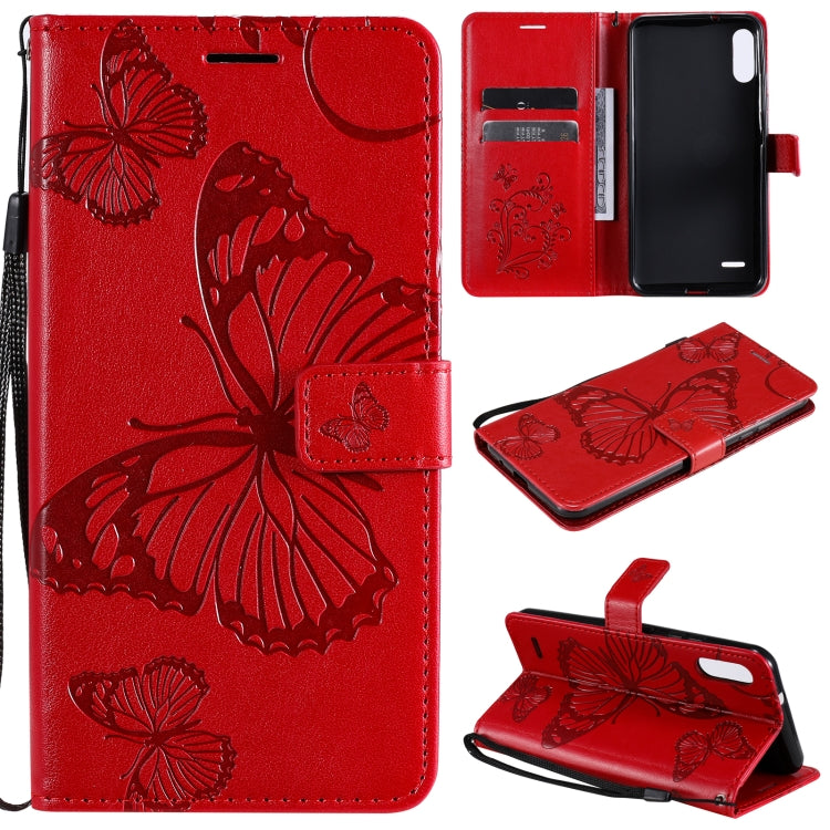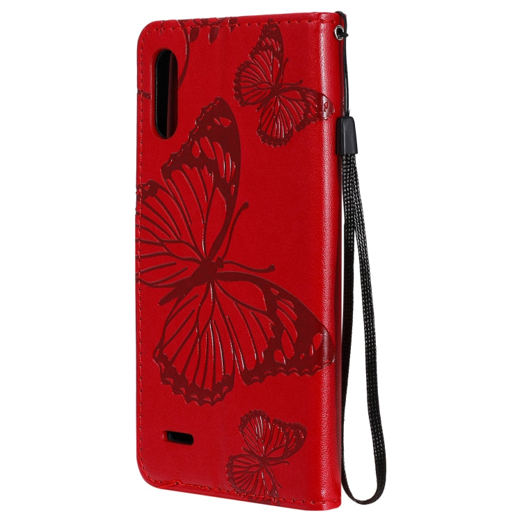 Funda Flip de Cuero para LG K22 y K22 Plus con Estampado 3D Mariposas, Soporte y Ranura para Tarjetas (Rojo)