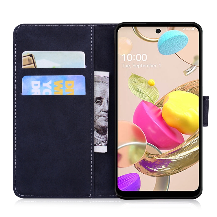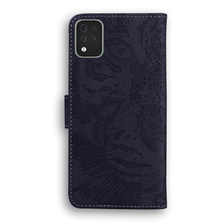 Funda de piel horizontal para LG K42 con patrón Tiger, tarjetero, soporte y billetera (Negro)