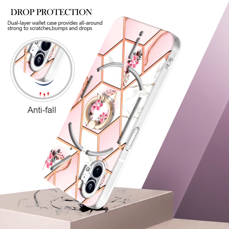 Estuche TPU para Nothing Phone 1 con Patrón de Flores Mármol y Empalme Galvanoplastia (Flor Rosa)