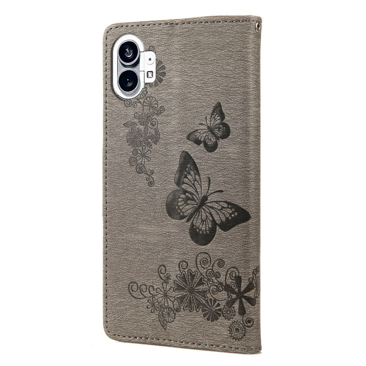 Estuche para Nothing Phone 1 de Cuero con Tapa Horizontal y Relieve de Mariposa (Gris)