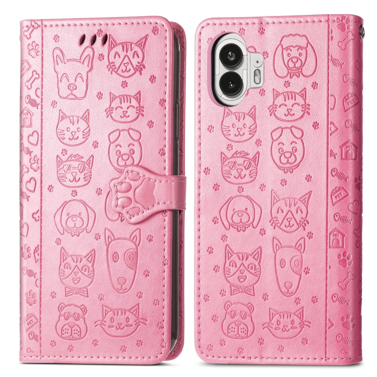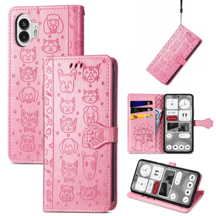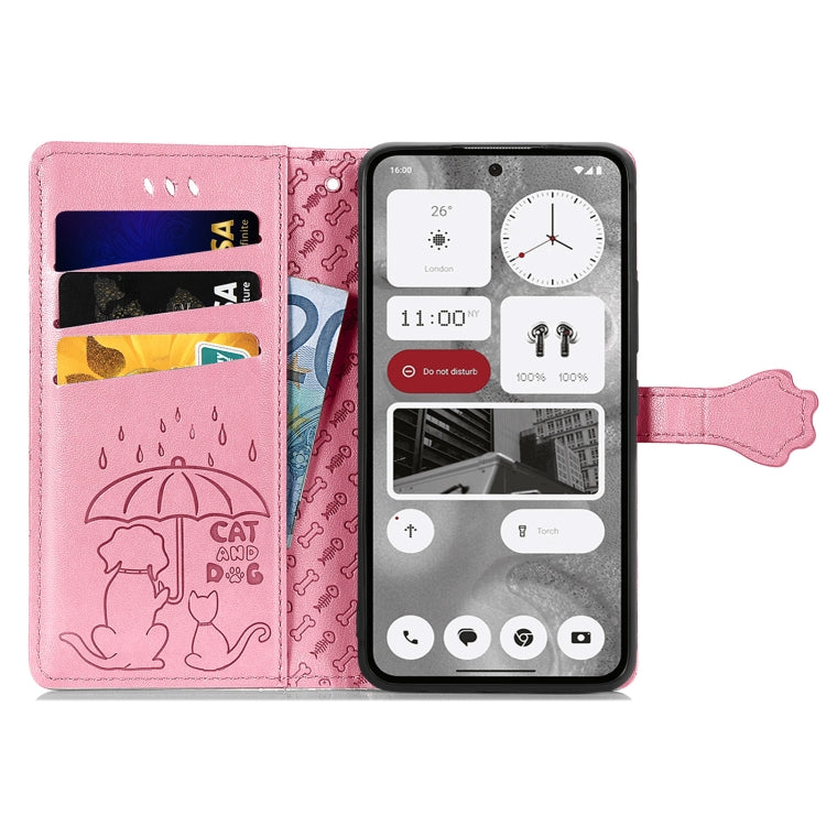 Estuche para Nothing Phone 2 de Cuero con Relieve de Gato y Perro (Rosa)