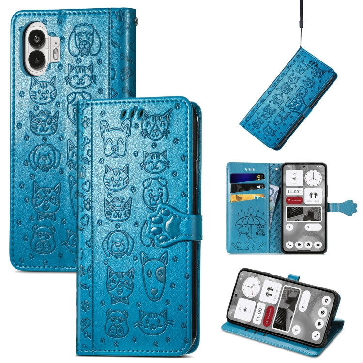 Estuche para Nothing Phone 2 de Cuero En Relieve con Diseño de Gato y Perro (Azul)