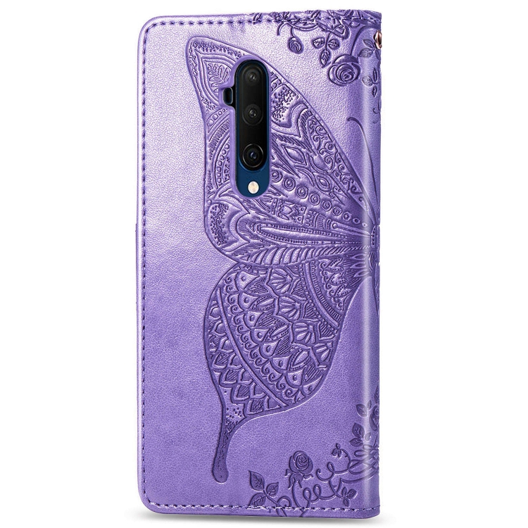 Estuche de Cuero For One Plus 7T Pro Butterfly Love con Tapa Horizontal, Soporte, Ranura para Tarjeta y Cordón (Morado Claro)
