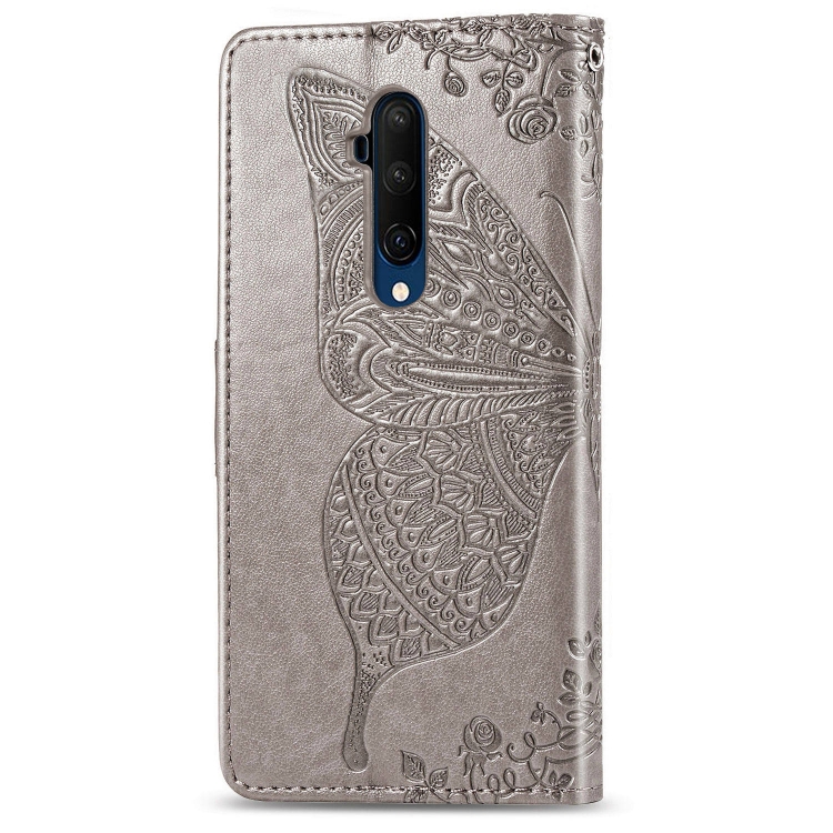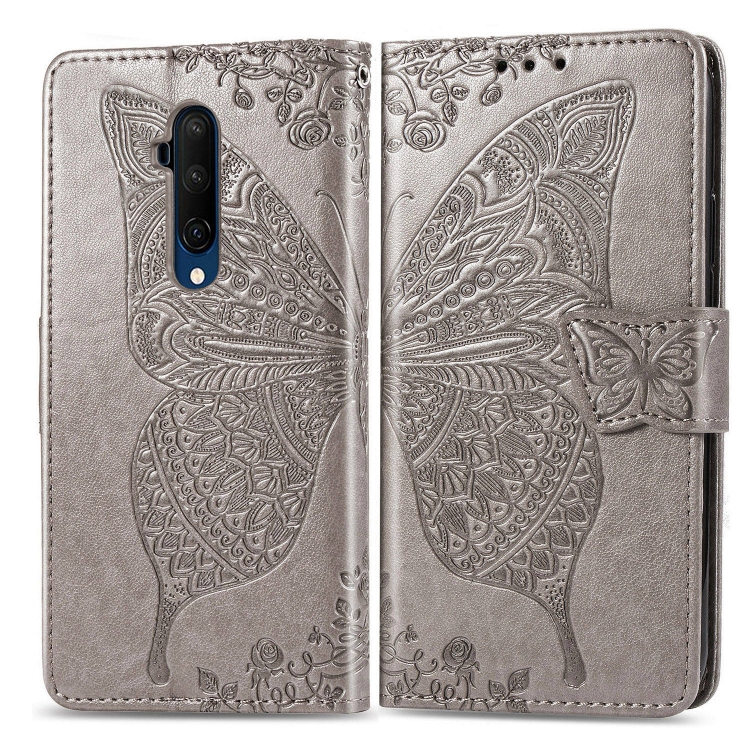 Estuche de Cuero One Plus 7T Pro Butterfly Love Flower con Tapa Horizontal, Soporte y Ranura para Tarjeta (Gris)