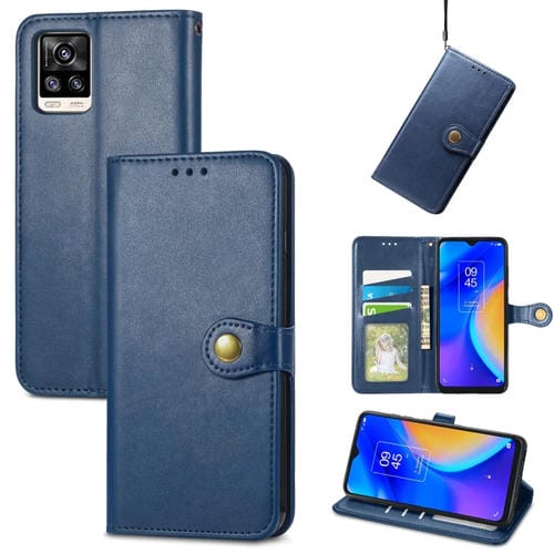 For Vivo V20 2021 Caja de la Hebilla de Cuero de Color Sólido (Azul)