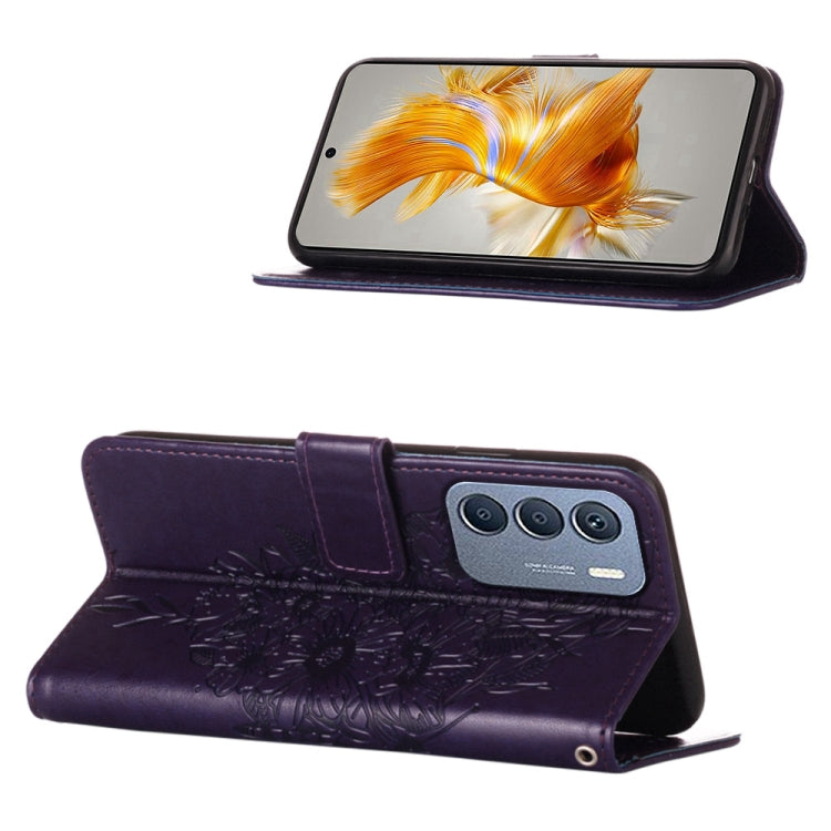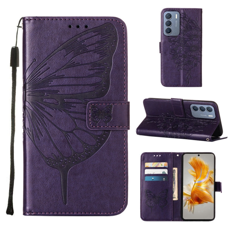 Estuche para Forinfinix Zero 5G 2023 T781 de Cuero con Mariposa en Relieve (Púrpura Oscuro)