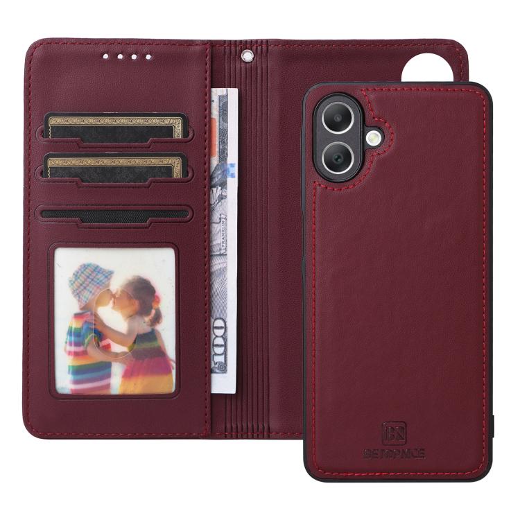 Funda 2 en 1 BETOPNICE BN-005 para Samsung Galaxy A07 4G, desmontable, de imitación de cuero genuino (rojo vino)