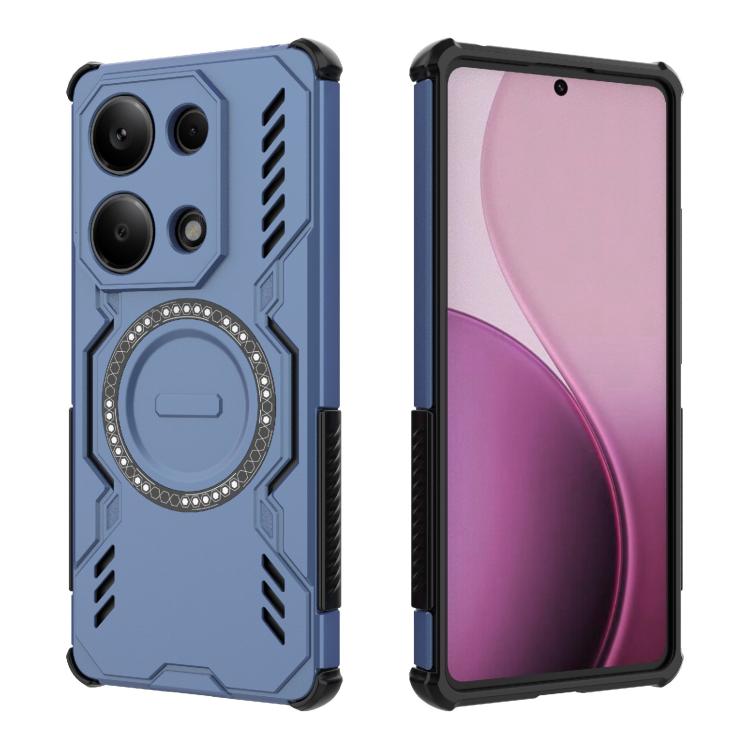 Funda a prueba de golpes con anillo magnético MagSafe y mariposa para Redmi Note 13 Pro 4G (azul)