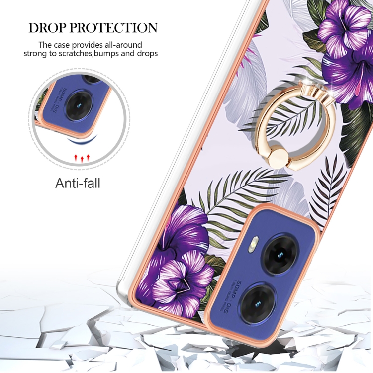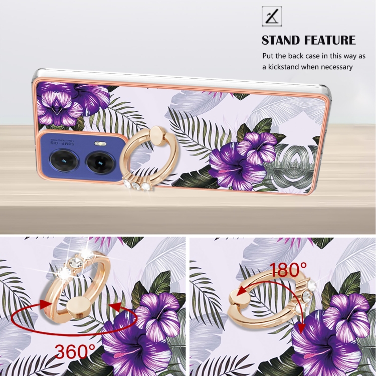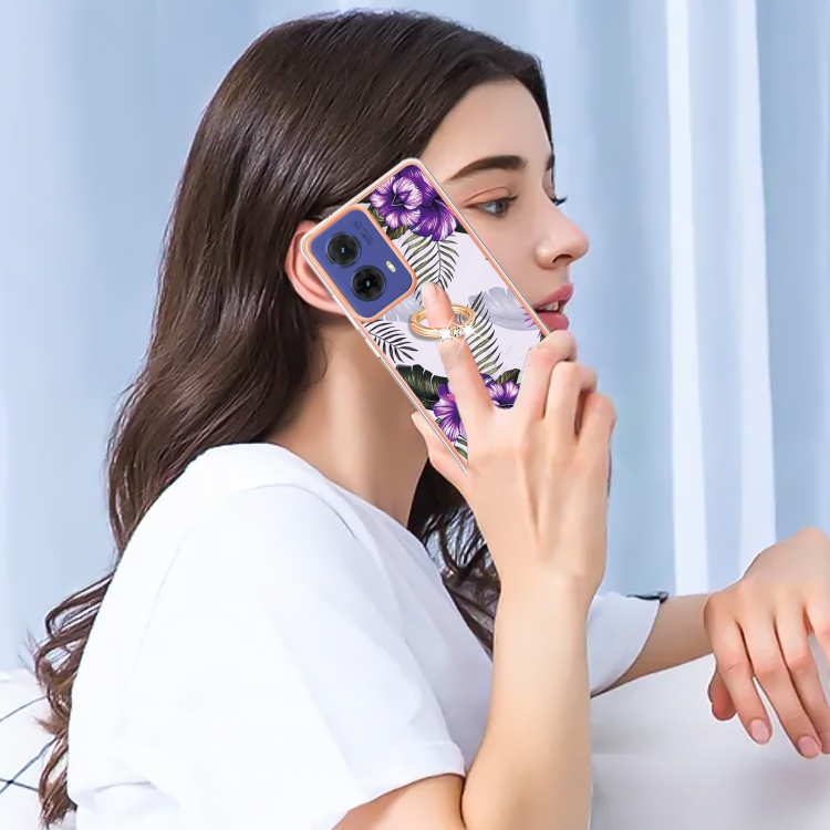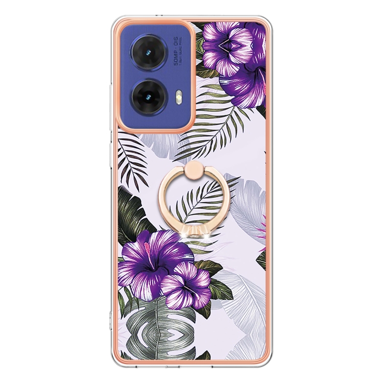 Funda TPU con Patrón Galvanoplastia y Soporte Anillo para Motorola Moto G85 (Flor Morada)