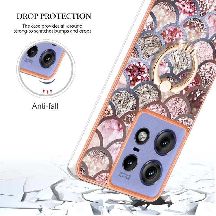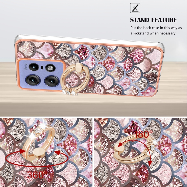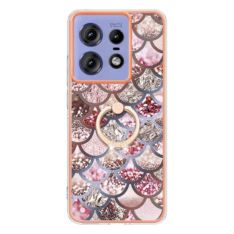 Funda TPU con Patrón Galvanoplastia y Soporte Anillo para Motorola Edge 50 Pro (Escamas Rosas)