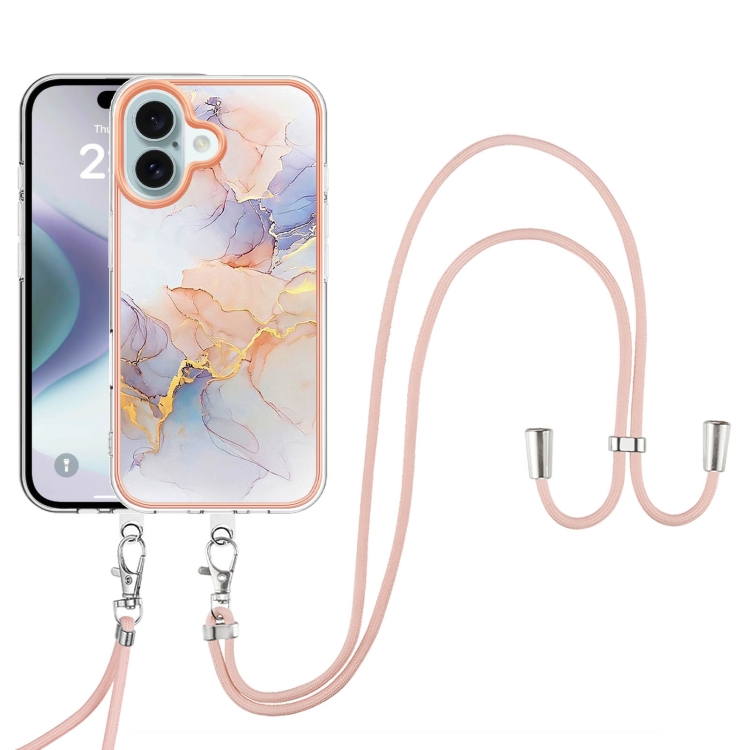 Funda a Prueba de Golpes con Patrón de Galvanoplastia Imd TPU para iPhone 16 con Cordón para El Cuello (Mármol Blanco Vía Láctea)