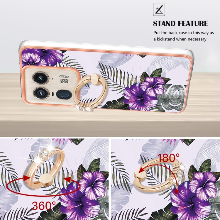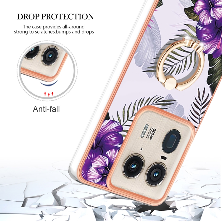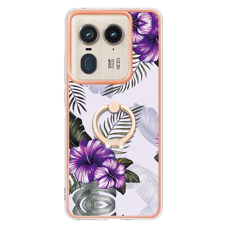 Funda TPU a Prueba de Golpes Motorola Edge 50 Ultra con Soporte Anillo Diamantes (Flor Morada)