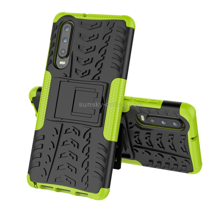 Funda a Prueba de Golpes Huawei P30 TPU + PC Textura Neumáticos con Soporte (Verde)