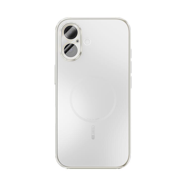 Funda ABEEL MagSafe esmerilada con disipación de calor y película para lente para iPhone 16 (blanca)