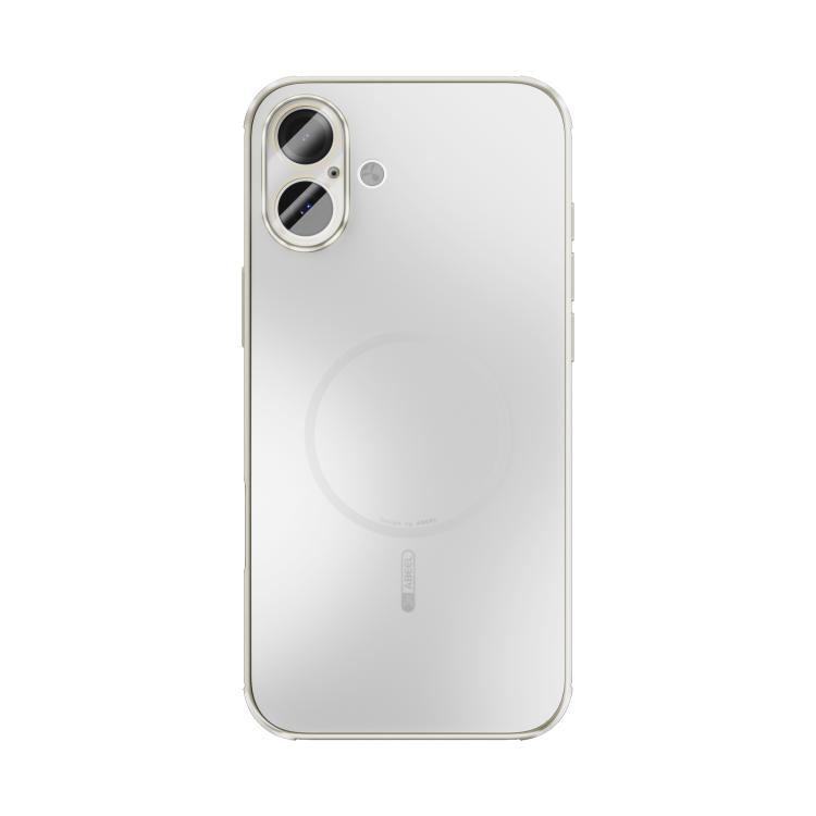 Funda ABEEL MagSafe esmerilada con disipación de calor y película para lente para iPhone 16 Plus (blanca)