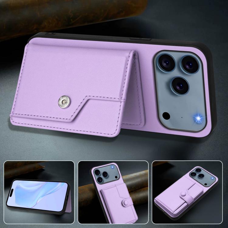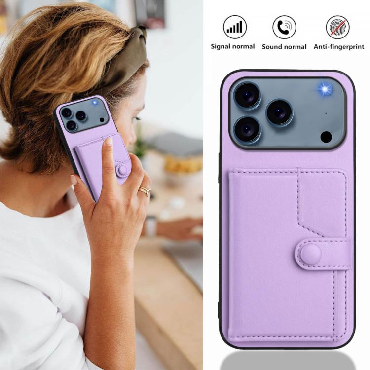 Funda antirrobo RFID con botón y tarjetero para iPhone 17 Pro Max (morada)