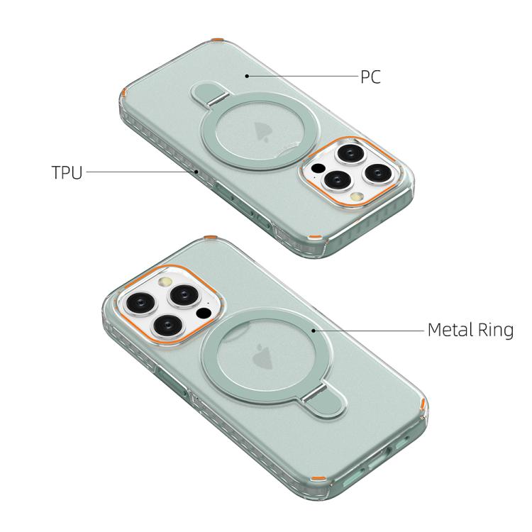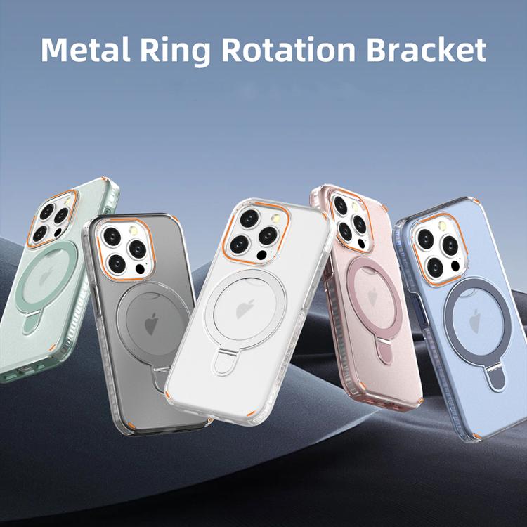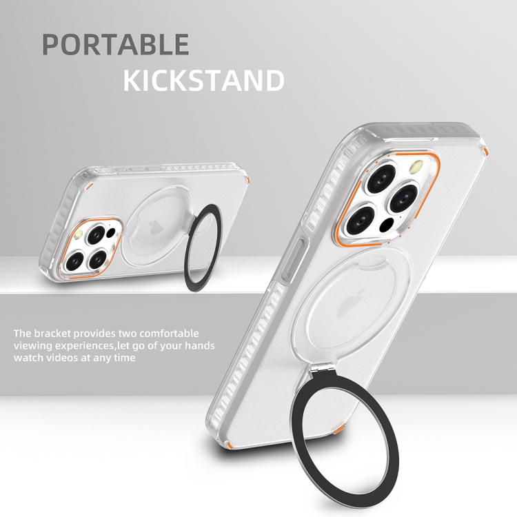 Funda colorida 2 en 1 con soporte de anillo MagSafe para iPhone 15 Pro (negro transparente)