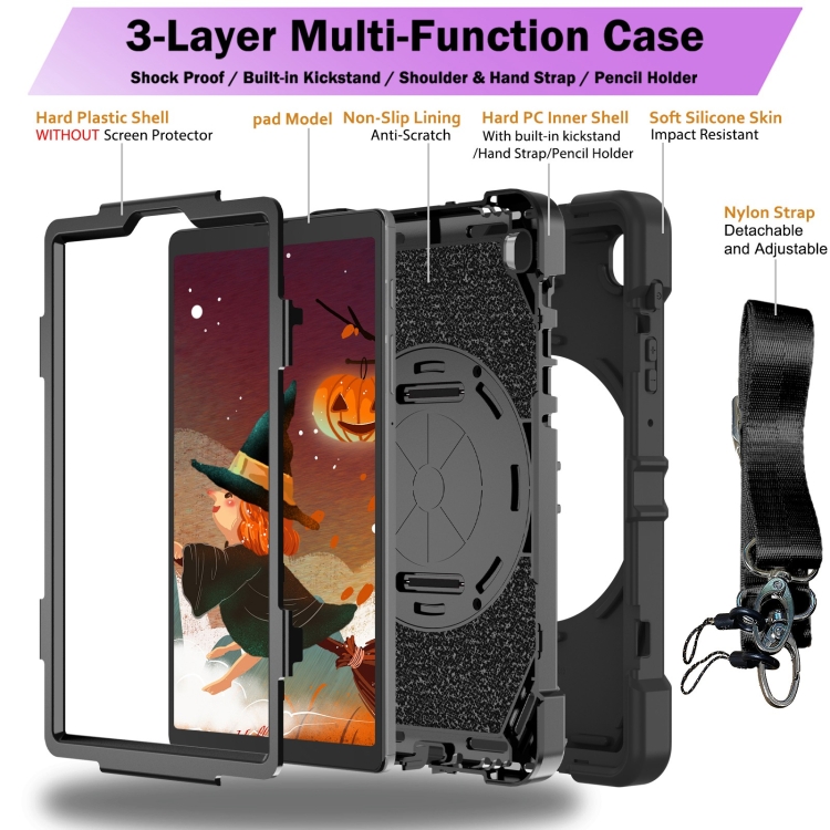Funda para Tablet Samsung Galaxy Tab A7 Lite con Soporte Giratorio y Empuñadura Tipo Murciélago (Negra)