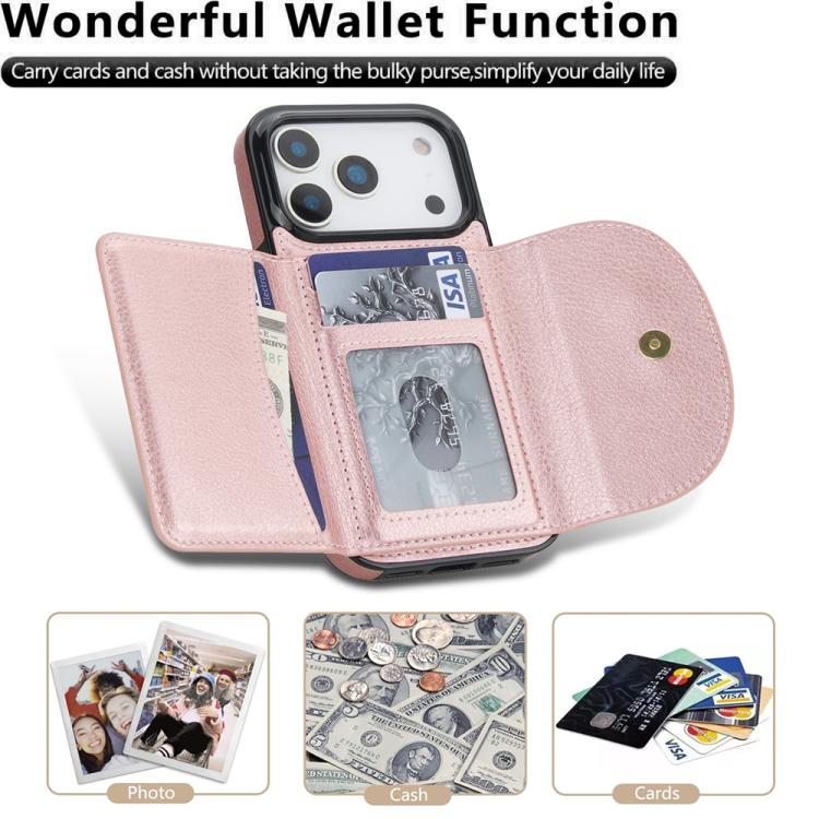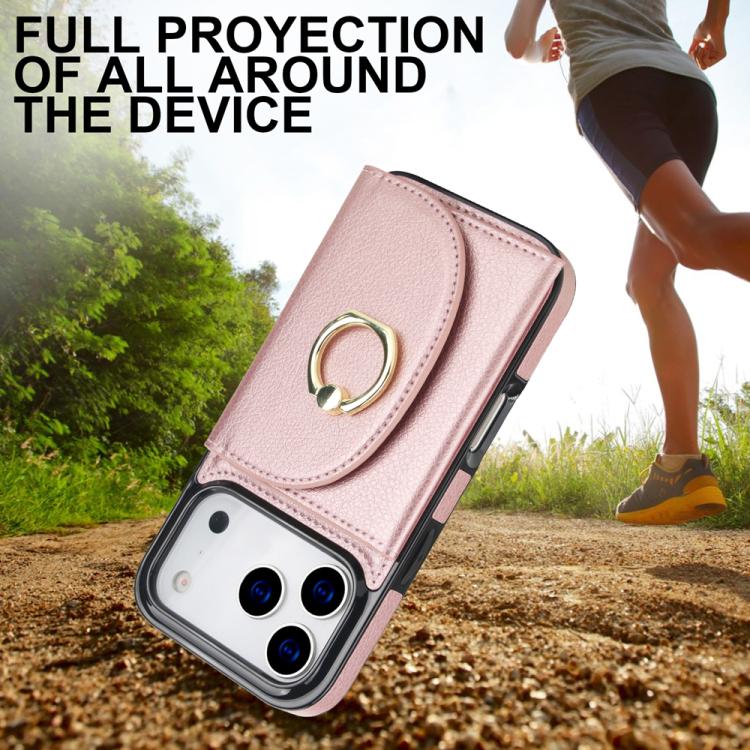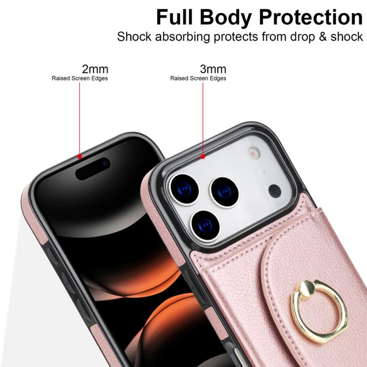 Funda con tarjetero y anillo para iPhone 17 Pro Max, con tacto de piel (oro rosa)