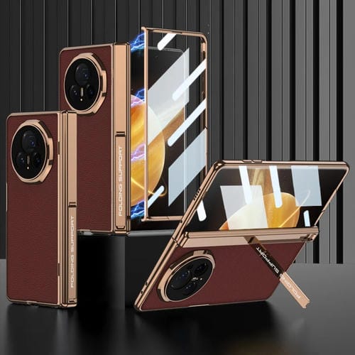 Funda de Cuero Gkk para Honor Magic V3 con Bisagras Magnéticas y Protección (Oro Arena)