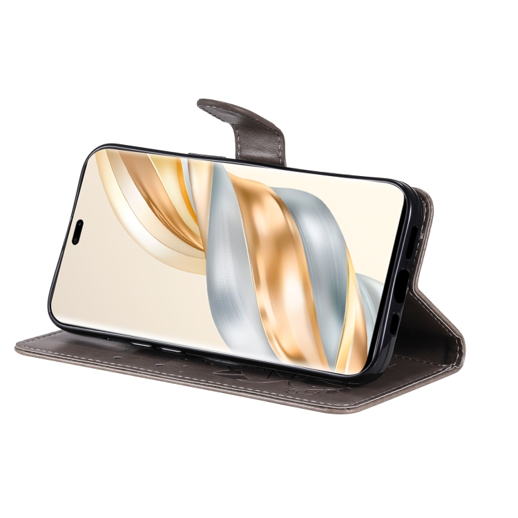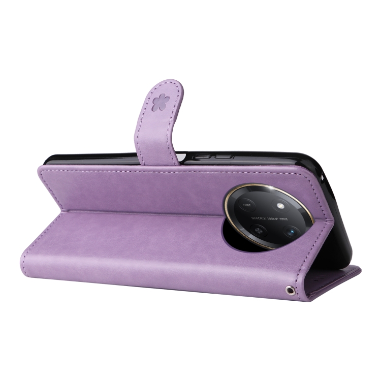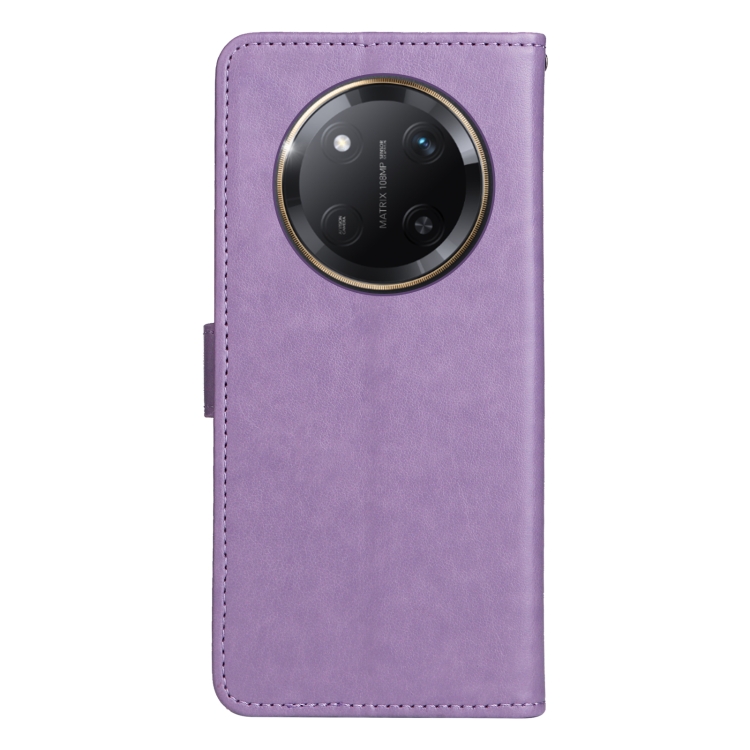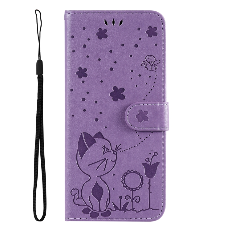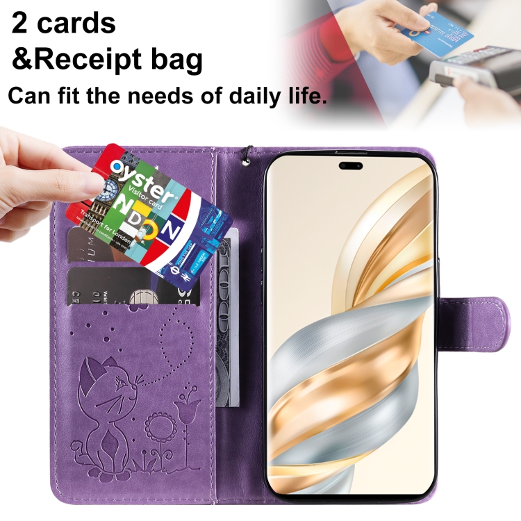 Funda de Cuero a Prueba de Golpes con Estampado Abeja y Gato para Honor X9C 5G (Morado)