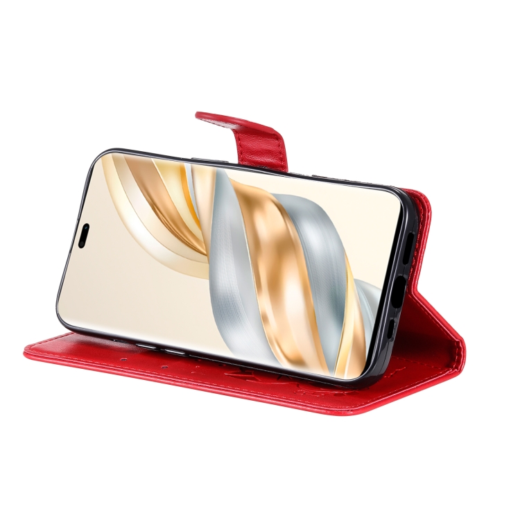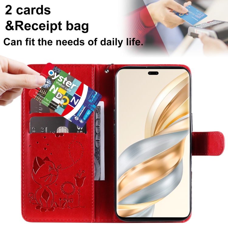 Funda de Cuero a Prueba de Golpes para Honor X9C 5G con Estampado de Abeja y Gato (Rojo)