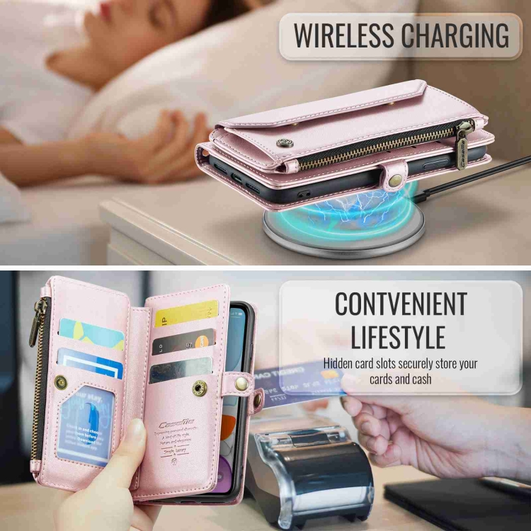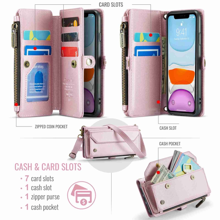 6. 10 ranuras para tarjetas + 2 ranuras para efectivo + 1 monedero con cremallera + Correa de hombro larga + correa de mano corta (basada en la imagen)