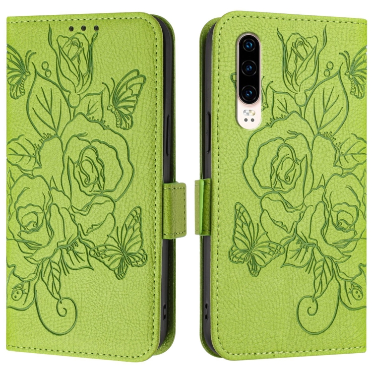 Funda de Cuero Antirrobo con RFID para Huawei P30 (Verde) Diseño en Relieve