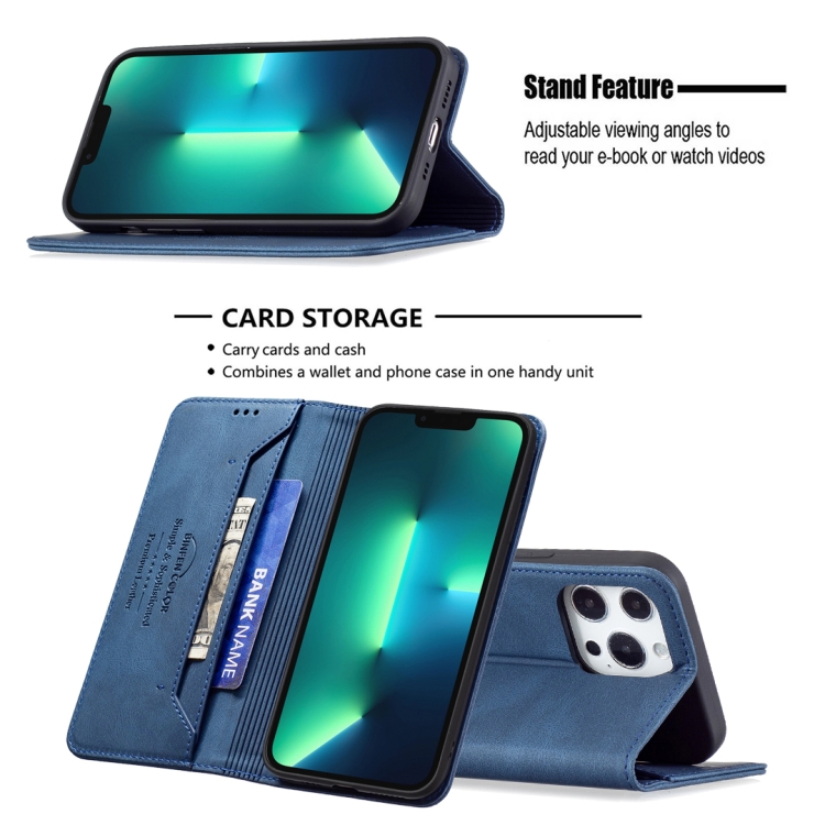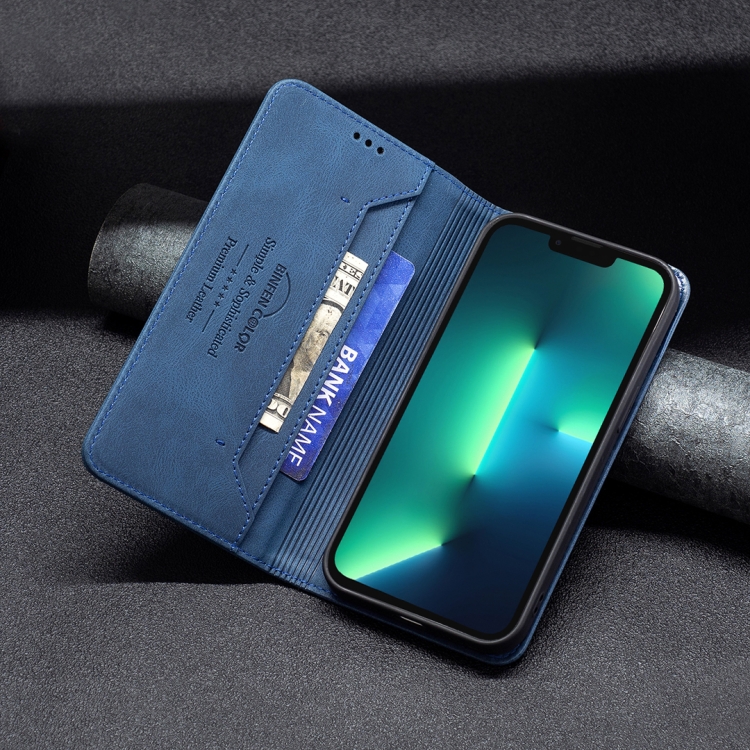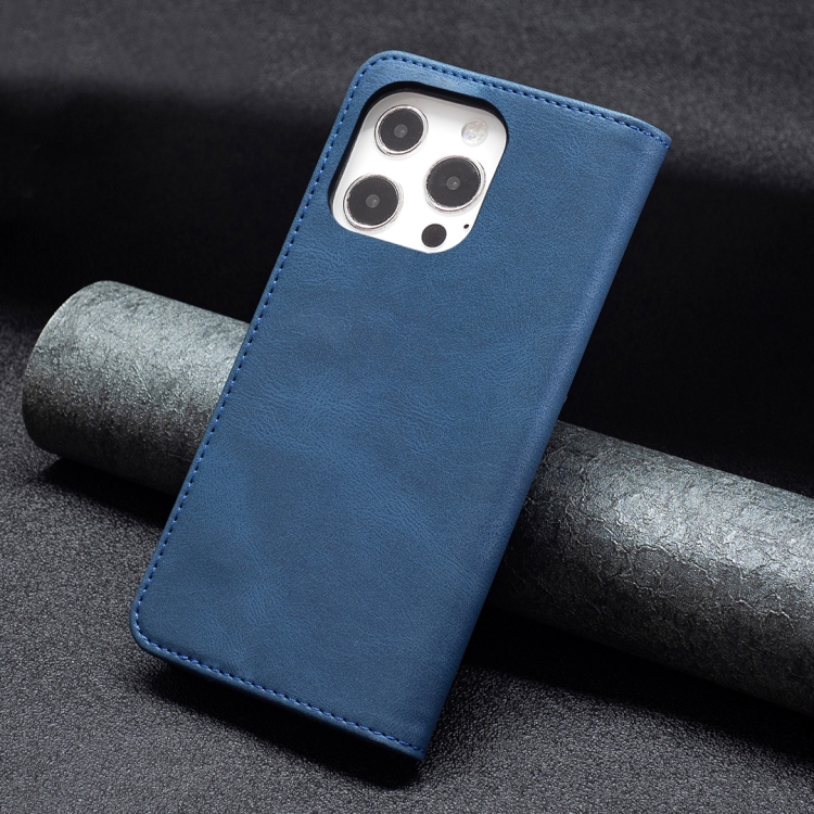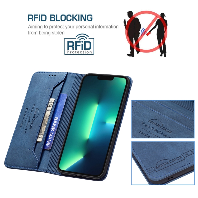 Funda de Cuero Antirrobo Bloqueo Rfid Magnético con Soporte Billetera para iPhone 13 Pro (Azul)