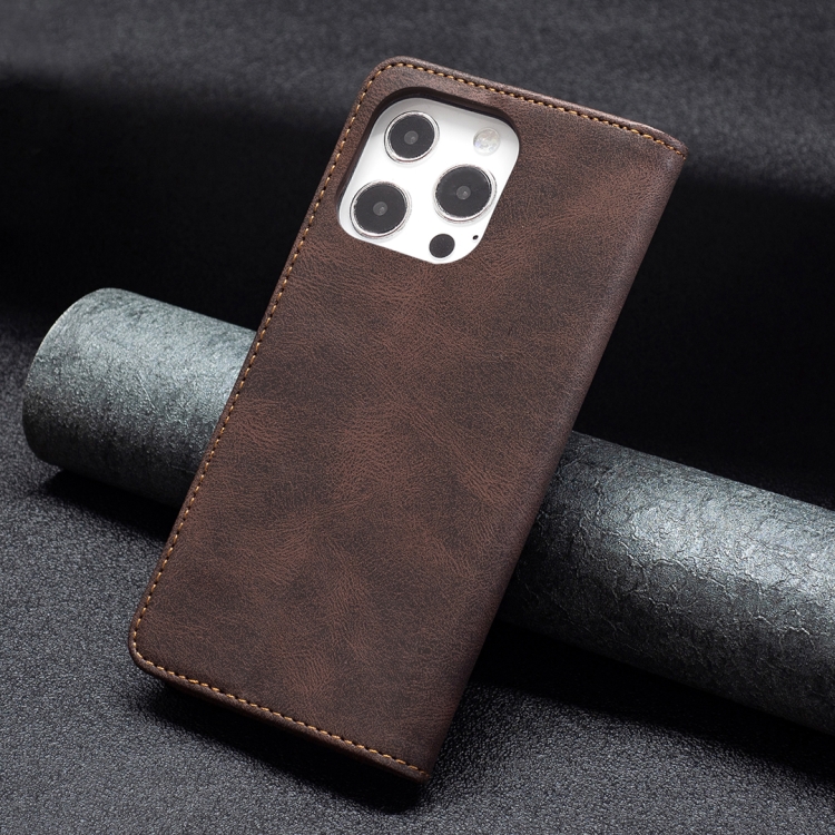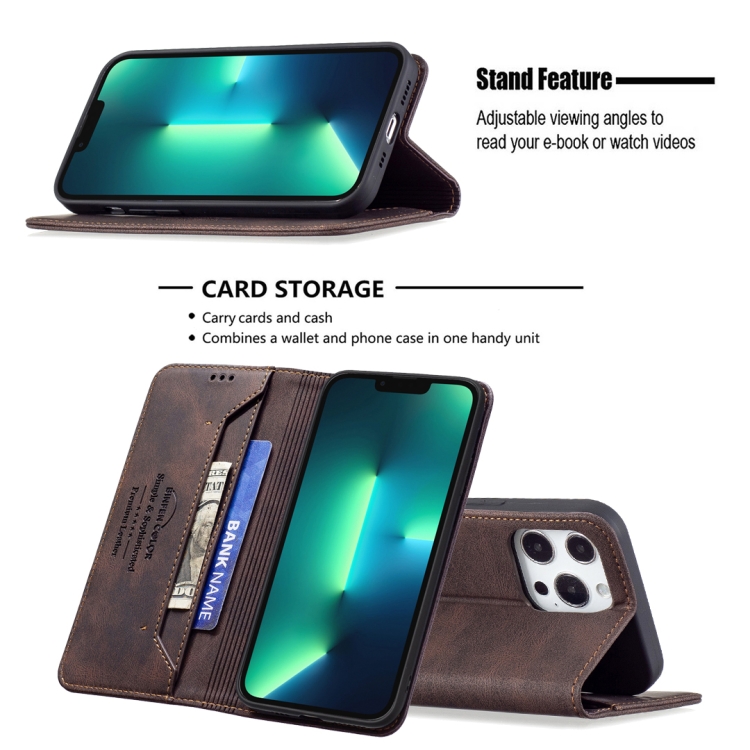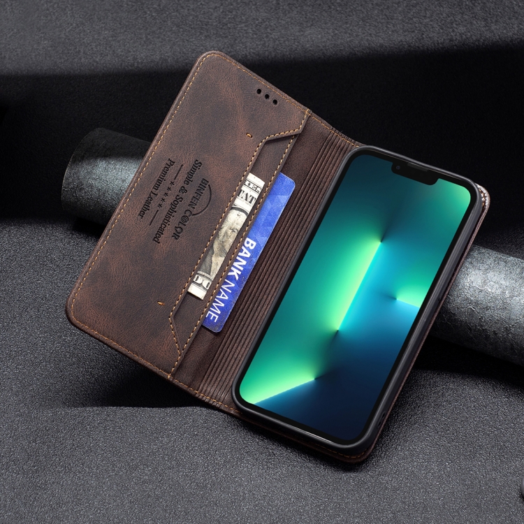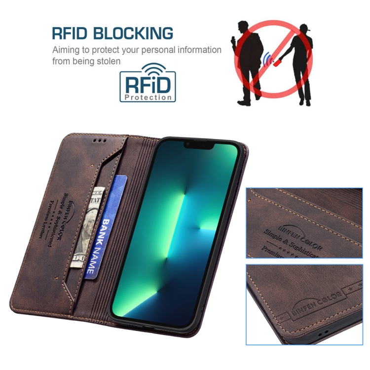 Funda de Cuero Antirrobo Bloqueo Rfid Magnético con Soporte y Billetera para iPhone 13 Pro (Brown)