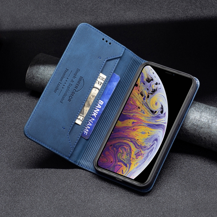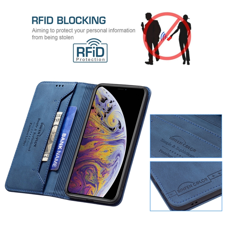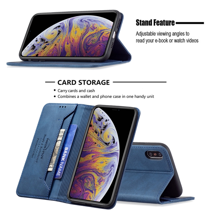 Funda de Cuero Antirrobo Bloqueo Rfid Magnético Soporte Tragamonedas Billetera para iPhone Xs Max (Azul)