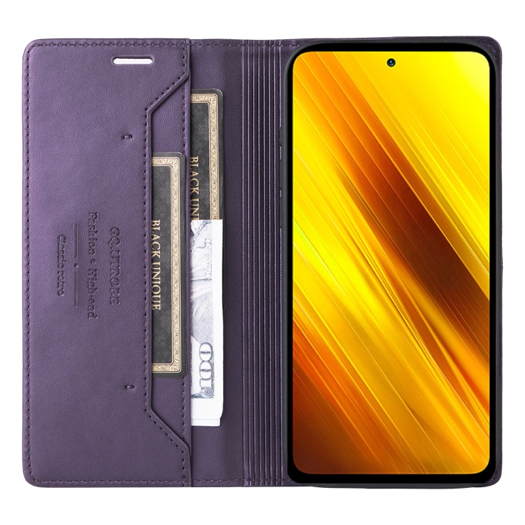 Funda de Cuero Antirrobo para Teléfono Xiaomi Poco X3 Nfc Gqutrobe G01 Rfid (Morado)