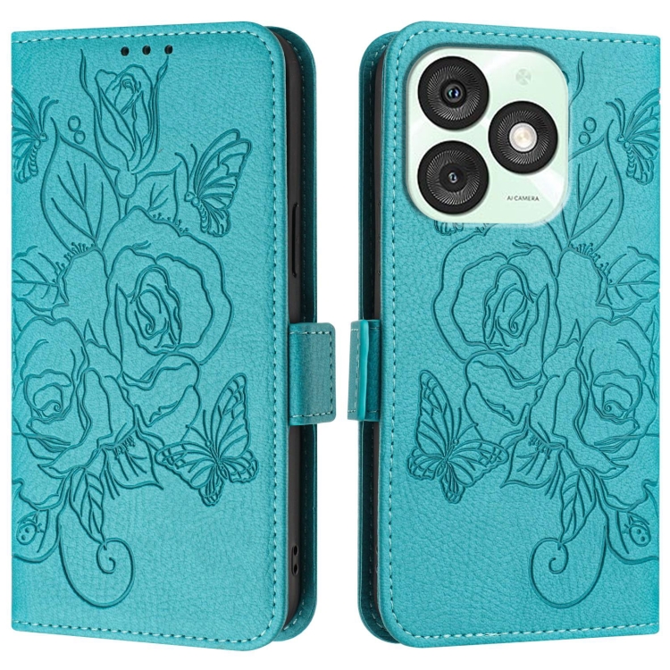 Funda de Cuero Antirrobo Rfid para Teléfono Itel A50 con Diseño de Rosa en Relieve (Azul Claro)