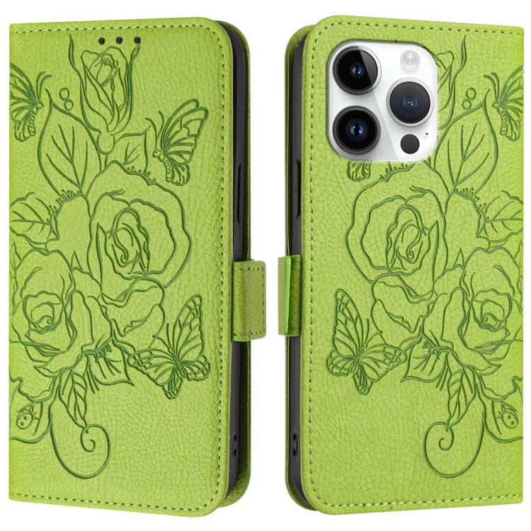 Funda de Cuero Antirrobo RFID para iPhone 14 Pro con Relieve (Verde)