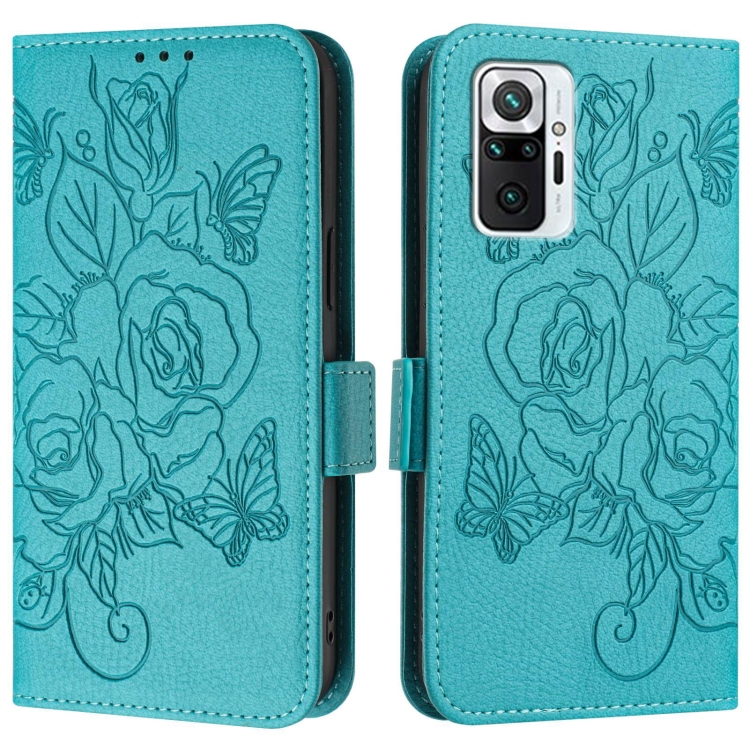 Funda de Cuero Antirrobo Rfid con Relieve En Rosa para Redmi Note 10 Pro (Azul Claro)