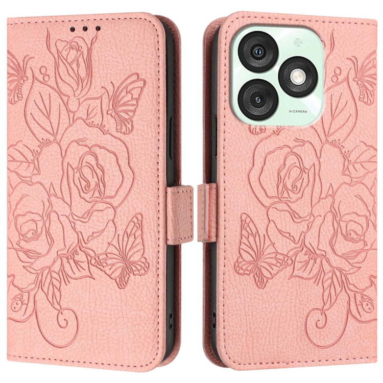 Funda de Cuero Antirrobo RFID con Relieve para Teléfono Itel A50 (Rosa)