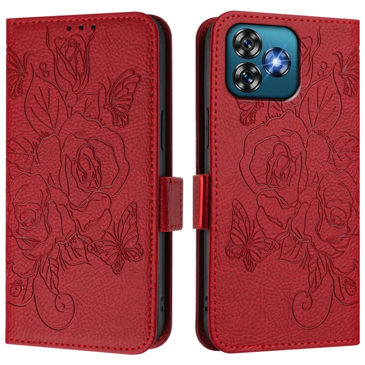 Funda de Cuero Antirrobo RFID con Relieve para Teléfono Oukitel C53 (Rojo)