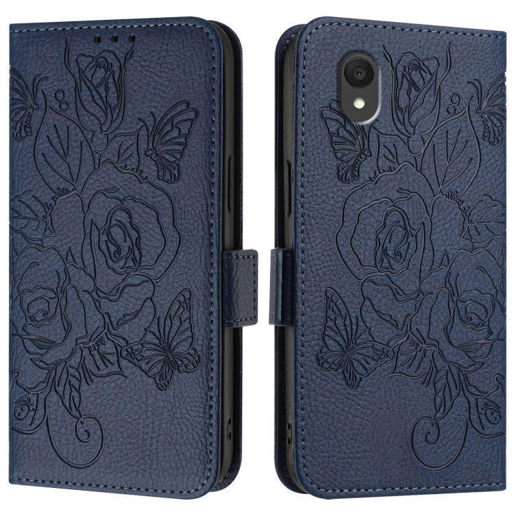 Funda de Cuero Antirrobo RFID con Relieve para Teléfono TCL 201 (Azul Oscuro)