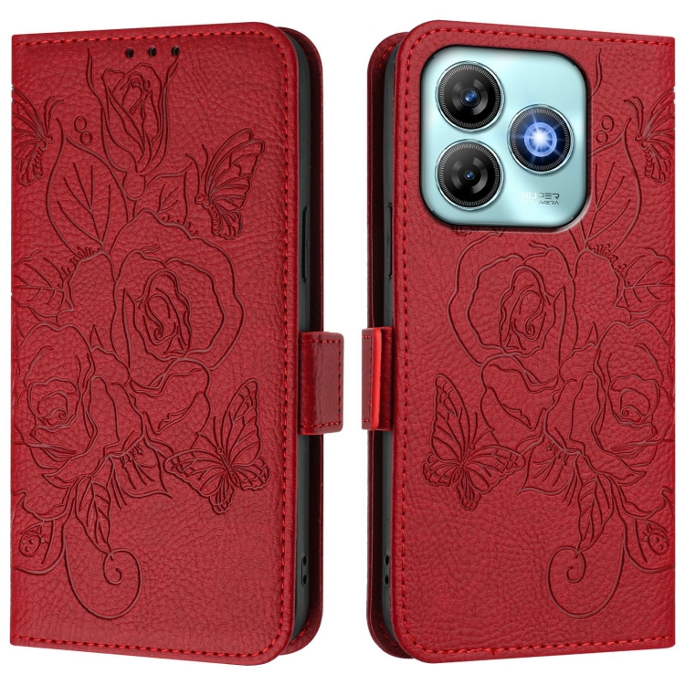 Funda de Cuero Antirrobo RFID con Relieve para ZTE Blade A75 4G (Rojo)