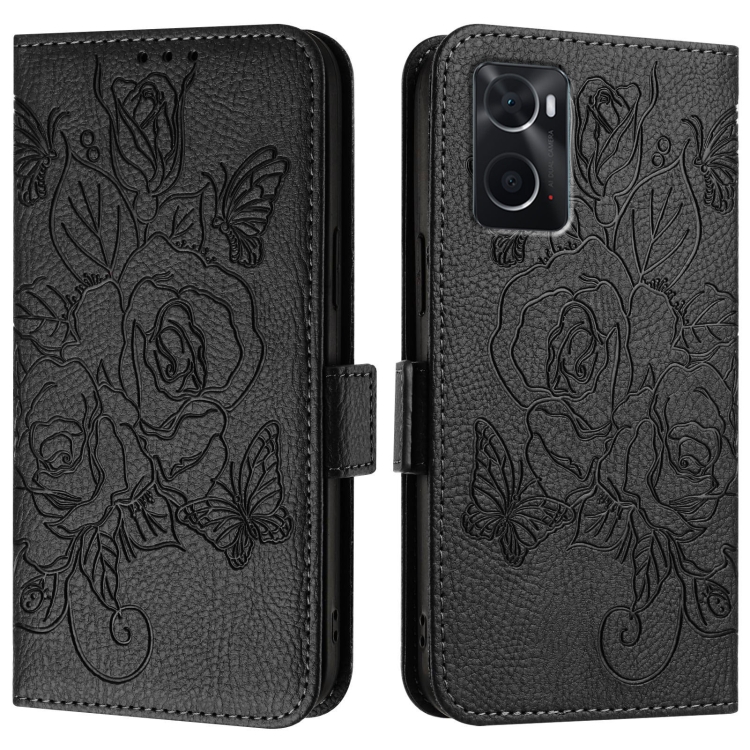 Funda de Cuero Antirrobo Rfid con Relieve Rosa para Oppo A36 4G / A76 4G / A96 4G / K10 4G (Negra)