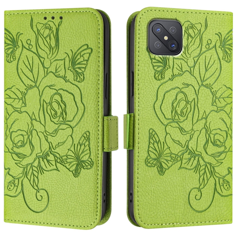 Funda de Cuero Antirrobo Rfid con Relieve Rosa para Oppo A92S 5G (Verde)