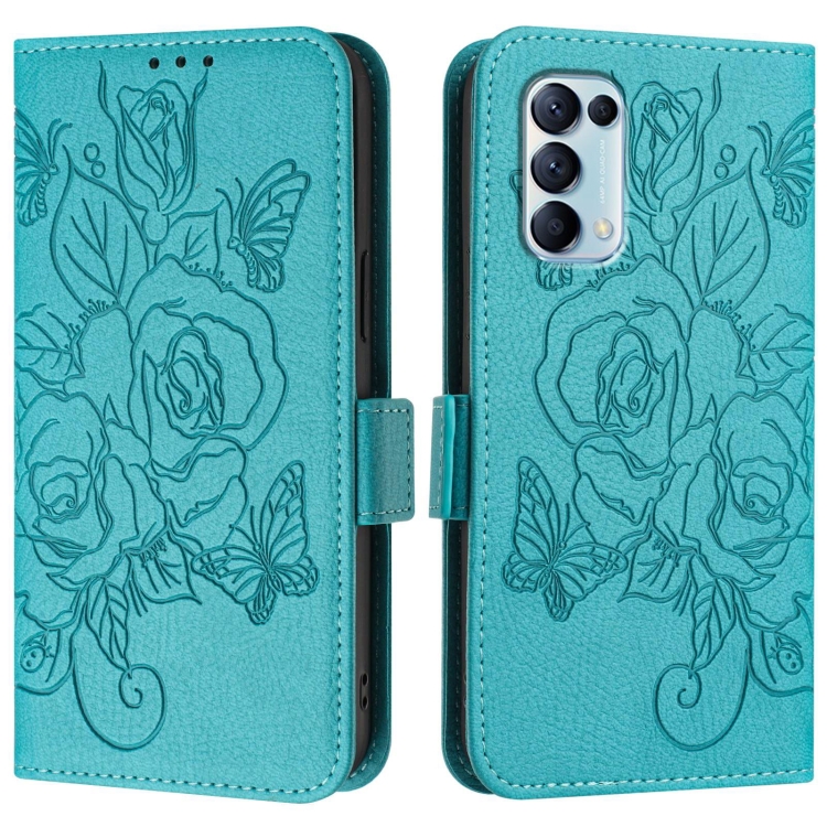 Funda de Cuero Antirrobo Rfid con Relieve Rosa para Oppo Reno5 5G/4G/Find X3 Lite (Azul Claro)