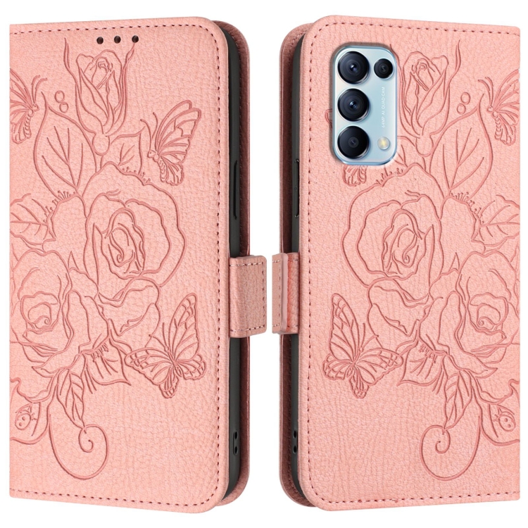 Funda de Cuero Antirrobo Rfid con Relieve Rosa para Oppo Reno5 5G/4G/Find X3 Lite (Rosa)