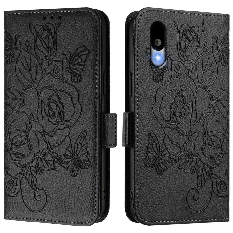 Funda de Cuero Antirrobo RFID con Relieve Rosa para Sharp Basio Active3 (Negra)